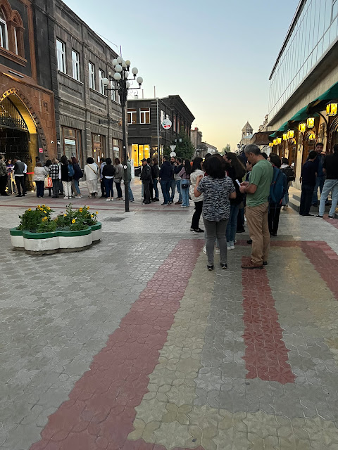 Мне показалось, что сегодня армяне гордятся своей Родиной и особенно соотечественниками, добившимися успеха за границей. А также радуются тому, сколько к ним приезжает гостей, которые снова поднимают экономику. Первый же таксист раскрыл нам все ништяки пребывания в Армении: как мы будем вкусно есть, круглосуточно пить (магазины работают без ограничений), играть в казино вместе с местными бабулями, как тут тепло (это правда, но только с марта по октябрь), «покупайте нашу недвижимость, ведь с собой не увезёте», «заводите детей, всем районом будем нянчить», и вообще лучше места для русского сейчас не найти. Другой таксист рассказывал, как они, армяне, избавились от коррумпированного правительства, и что у них более нет взяток, поэтому, например, разморозили 10-летнюю стройку автомагистрали. После этих слов на трассе нас остановил патруль ДПС за превышение скорости (на шоссе везде несправедливое 50 км/ч) и попросил отстегнуть. Водитель потом пояснил, что пока антикоррупция работает только в Ереване. Взятку давать не пришлось, поскольку у таксиста были некие спецправа, выданные самим президентом за то, что он вывозил раненых бойцов из Арцаха и отбивался от дронов. На улице к нам подошёл пожилой мужчина в потрёпанной одежде и стал рассказывать, откуда берётся питьевая вода в многочисленных фонтанчиках по всей Армении. И каким-то образом вывел разговор к тому, как они, армяне, уважают Петра Первого, и только его гибель помешала освобождению их народа.